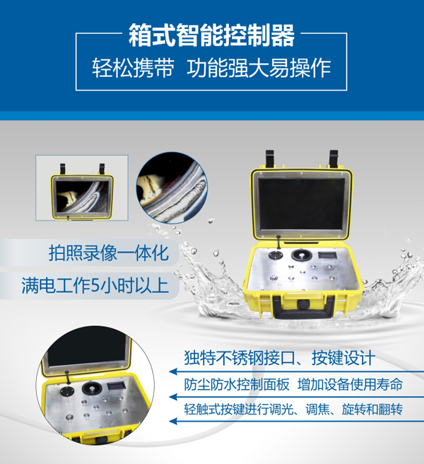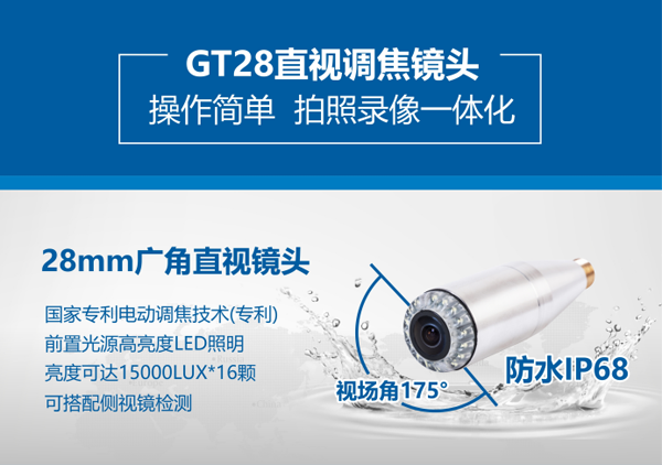 GT28系列管道內(nèi)窺鏡是一款多功能型內(nèi)窺鏡,10.1寸高清顯示智能控制器,10-50m材質(zhì)為GFRP檢測(cè)線可供長(zhǎng)距離檢測(cè)。直徑28mm電動(dòng)調(diào)焦鏡頭在管道內(nèi)部全方位觀察。